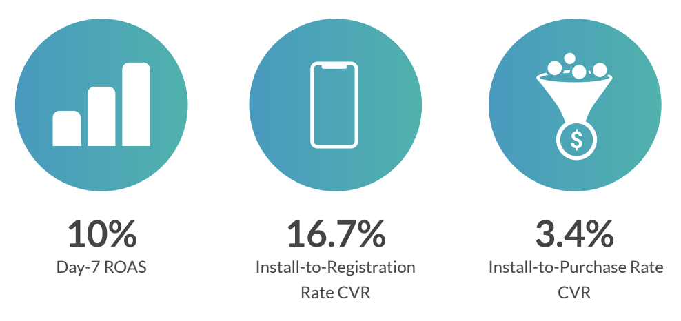 Platform-specific campaigns drove install volume while maintaining cost control by leveraging regional and inventory-based pricing efficiencies. Creative testing and dynamic budget reallocation further optimized the campaign for down-funnel actions — registrations and purchases — ensuring monetization matched scale.