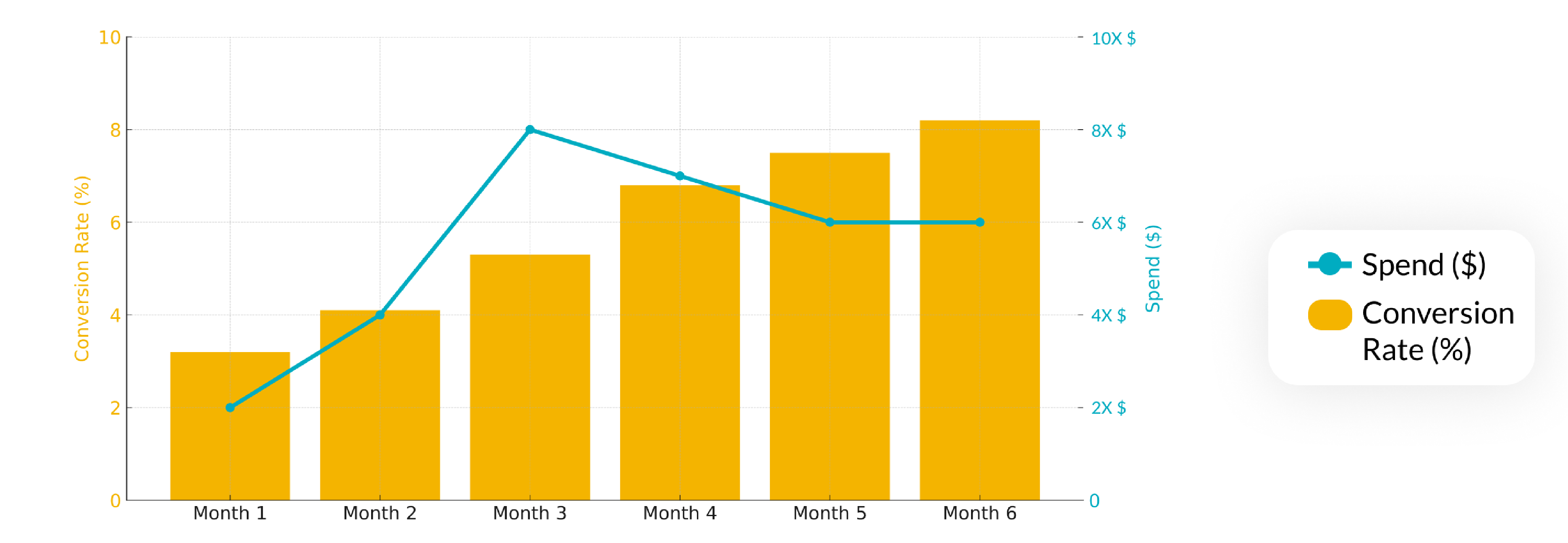 A leading messaging app partnered with FeedMob to optimize traffic sources and improve user acquisition efficiency. Through strategic partner selection, fraud prevention, and continuous traffic optimization, the app achieved a 156% increase in its key conversion rate over six months, growing from 3.2% to 8.2%.
