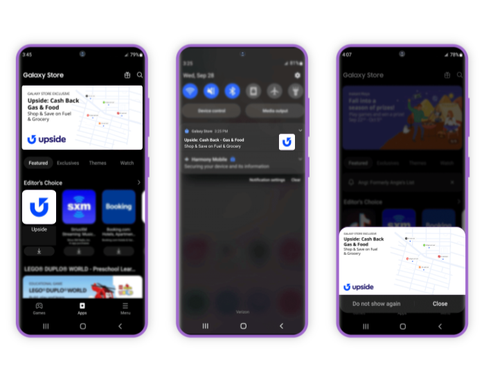 FeedMob is Samsung’s preferred channel partner. We’ve teamed up to give advertisers a gateway to one of the most valuable brands in the world. Performance teams can reach a highly sought-after audience through sponsored on-device push notifications and featured placement in Samsung’s Galaxy Store. Users must opt in to receive promotions from Samsung, resulting in high engagement.