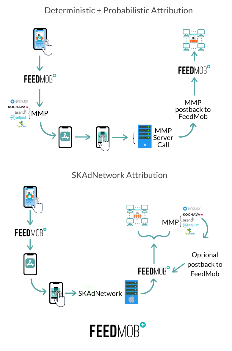 In the wake of Apple’s deprecation of IDFA and the introduction of App Tracking Transparency (ATT), all of FeedMob’s mobile measurement partners (MMPs) partners have issued guidance that details three paths for mobile attribution. These rules that determine credits toward a campaign event under iOS 14.5 are as follows: